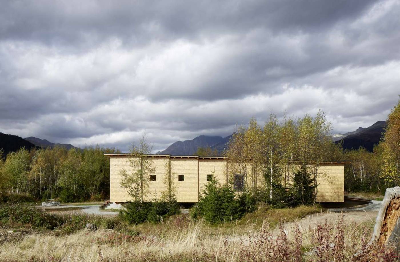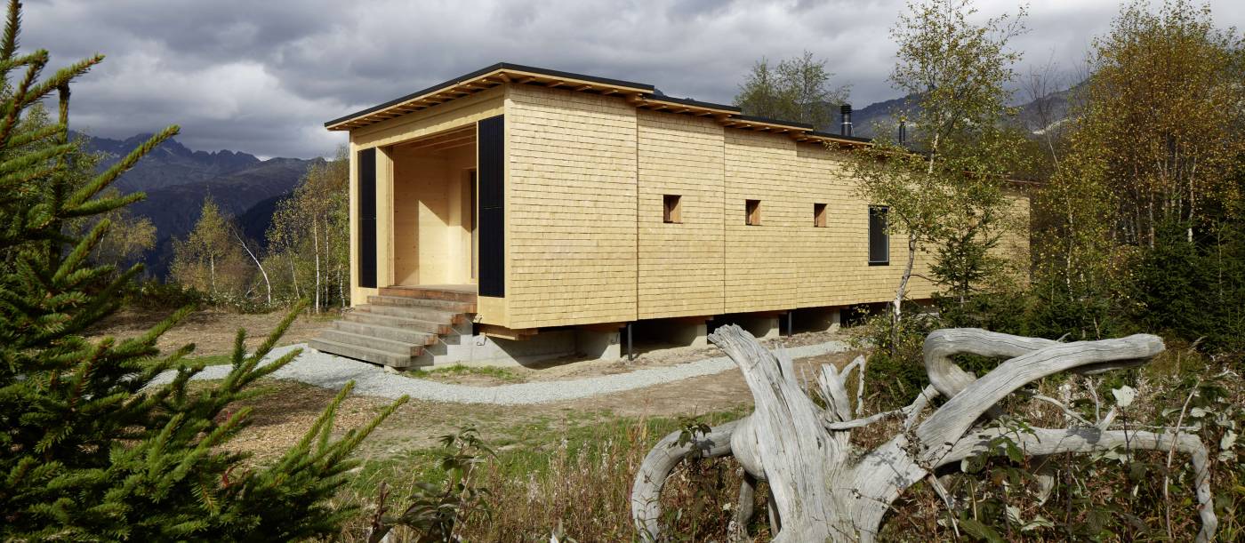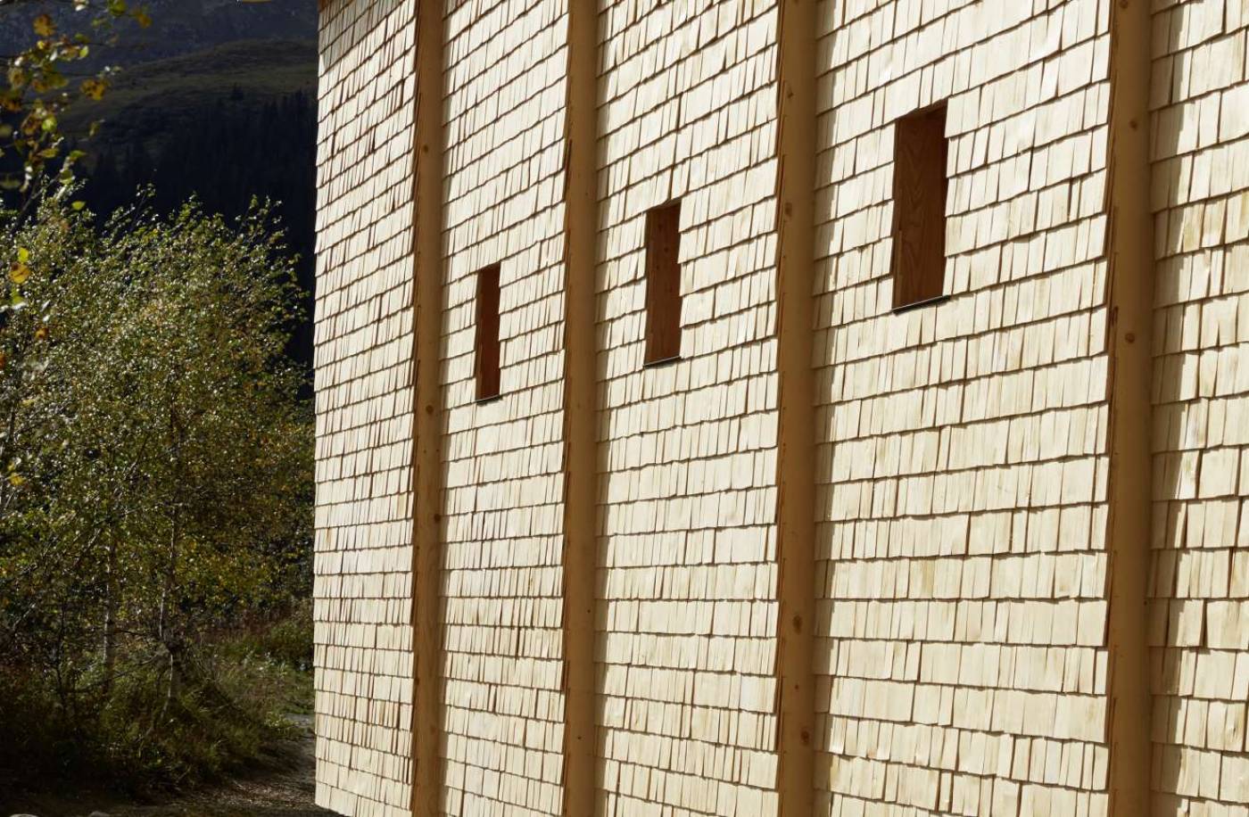 Der Wald rund um die Academia wurde beim Orkan Vivian vor rund 25 Jahren gänzlich niedergeworfen. Heute ist die Academia Vivian von einem aufkommenden Jungwald umgeben. Das Holz, welches zum Bau benötigt wurde, stammt aus den Wäldern der umliegenden Gemeinden. Fichte, Lärche und Arve wurden in jenem Verhältnis eingesetzt, in dem sie in den umliegenden Wäldern vorkommen. Maximale Längen und Querschnitte waren vorgegeben. Grund dafür ist, dass nur bis zu sieben Meter gesägt werden konnte oder die Bäume im jungen Bergwald ohnehin weniger massen. Architekt und Bauingenieur entwickelten zusammen ein System, das aus drei Lagen relativ schmaler Balken besteht. Alle drei Lagen sind nur mit Holzdübeln verbunden, was ein völlig natürliches Konstruktionssystem ohne Metallteile ergibt.