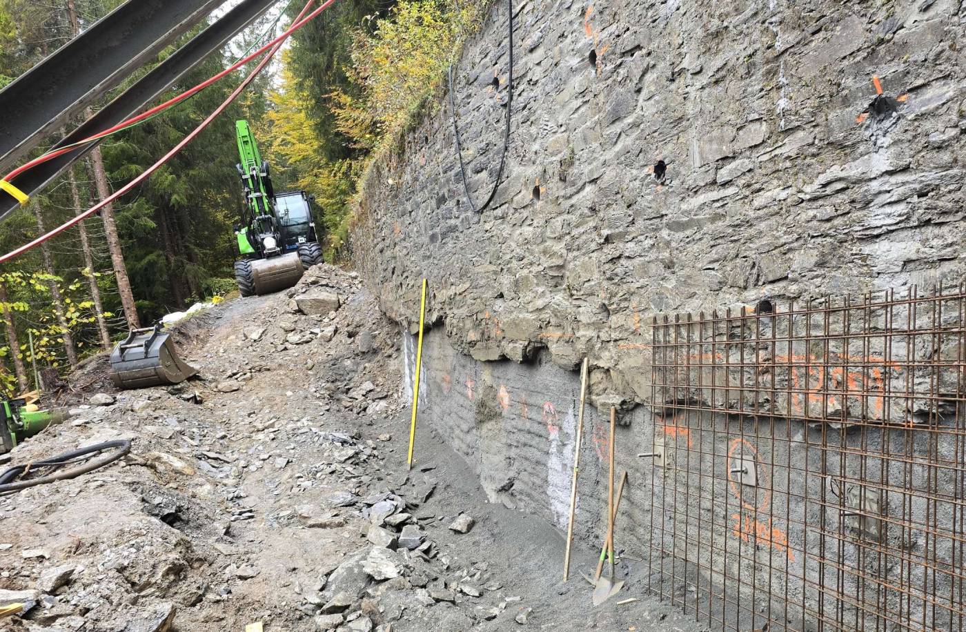 Der Caumasee in Flims zählt zu den schönsten Badeseen der Schweiz und zieht dank seiner beeindruckenden Farbgebung Besucher aus der Region und weltweit an. Um den heutigen Ansprüchen an die Gästeversorgung gerecht zu werden, startete im Herbst 2023 der Neubau des Restaurants sowie die Sanierung der Standseilbahn und der Zufahrten. Für Lieferwagen und Ambulanz wird die Standseilbahn künftig unterfahrbar, wozu die Durchfahrt durch Absenkung der Kiesstraße erweitert wird. Dies erfordert Rückverankerung, Unterfangung und Vormauerung der Stützmauer sowie den Ersatz der Standseilbahnstütze. Die Arbeiten in der sensiblen Umgebung erfordern präzise Koordination mit den Maßnahmen an der Bahn. Die Grünenfelder und Partner AG übernimmt Planung und Bauleitung für die Absenkung der Unterführung zum Caumasee.