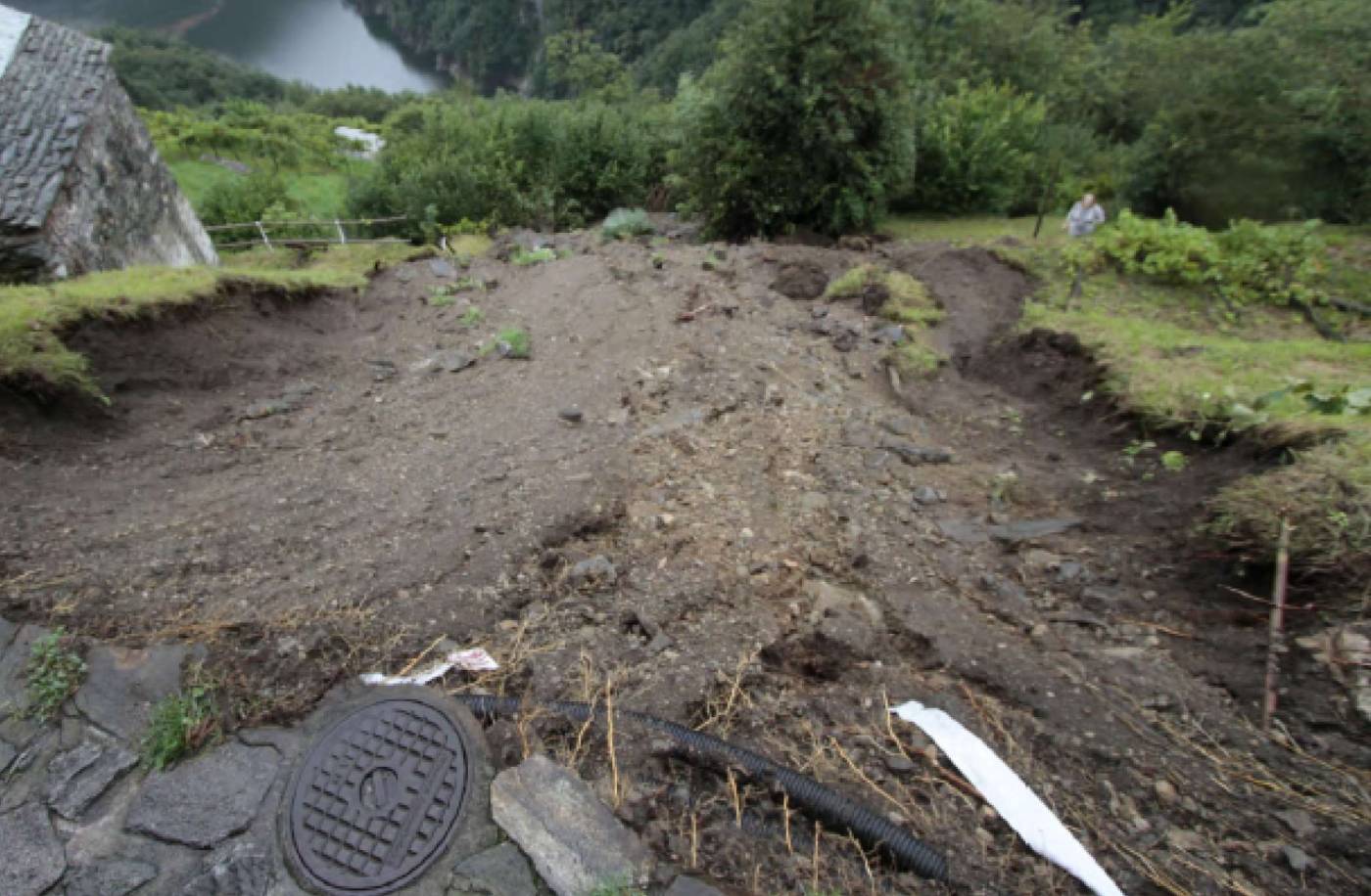 La zona oggetto del monitoraggio é conosciuta già da diversi anni a causa di diversi eventi di grandi dimensioni. Già del 1941, a seguito di un evento franoso, circa 80 della strada cantonale sono stati distrutti. Negli anni si sono susseguiti diversi eventi di piccola o media intensità. A seguito di queste instabilità, si é deciso di installare un monitoraggio geodetico che permette di analizzare meglio l'evolversi della situazione. Sono stati installati una decina di punti di controllo su edifici o muri di sostegno in pietra che vengono controllati regolarmente.