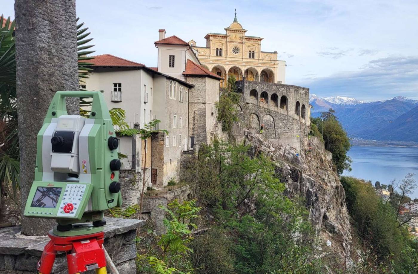 Presso il santuario della Madonna del Sasso a Orselina, sono stati messi in opera degli ancoraggi attivi/passivi per consolidare la parete rocciosa a sud. Visto la sensibilità del Santuario, é stato deciso di installare un geofono per il monitoraggio delle vibrazioni e di monitorare geodeticamente la parete rocciosa e relativi muri di sostegno in pietra. Tutti i dati sono stati pubblicati in tempo reale sulla nostra piattaforma web Tedamos.